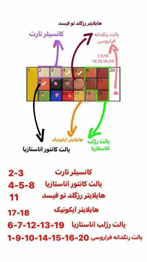 پالت رنگدانه مای میکاپ استوری با داشتن ۲۰ رنگ متفاوت یک پالت بسیار کاربردی برای ما هست. از این محصول میتوان برای چشم،گونه و لب استفاده کرد.